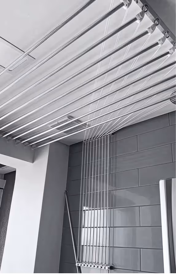 Nossos varais planejados foram desenhados para quem não abre mão de um ambiente organizado e planejado. Feitos em inox e alumínio, eles unem a resistência máxima contra corrosão com um design discreto que respeita a estética do seu lar.